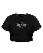 Baby Look Cyclone Cropped Roadking Metal em malha penteada com silk metalizado exclusivo.
