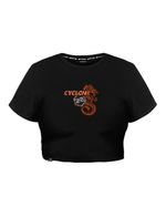 Baby Look Cyclone em malha penteada com silk metalizado exclusivo.