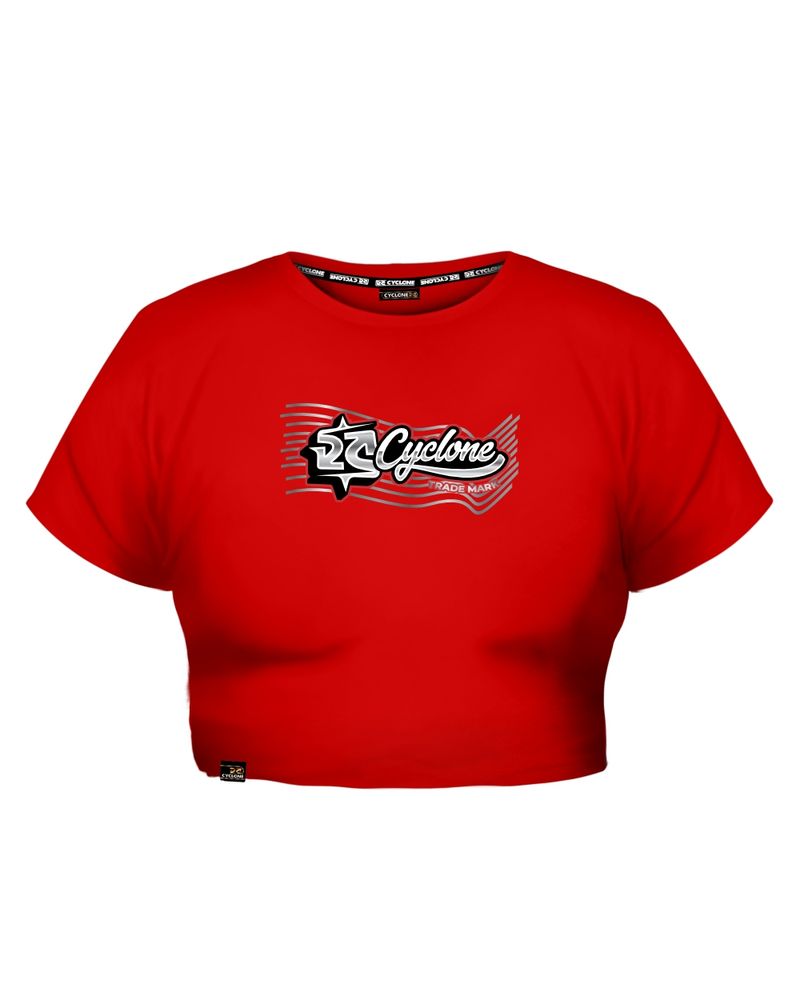 Baby Look Cyclone Cropped Rolling Metal em malha penteada com silk metalizado exclusivo.