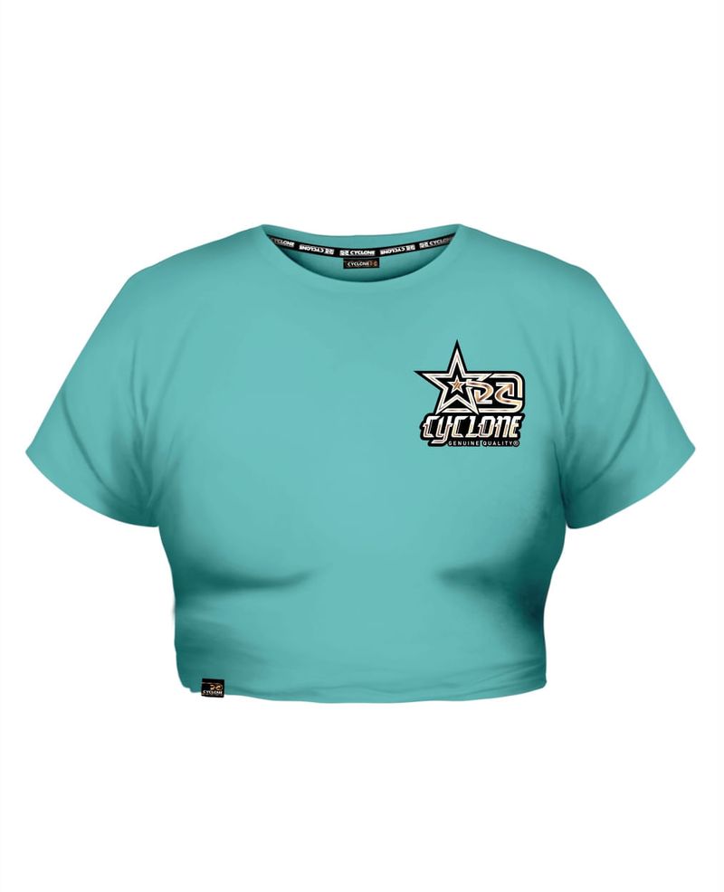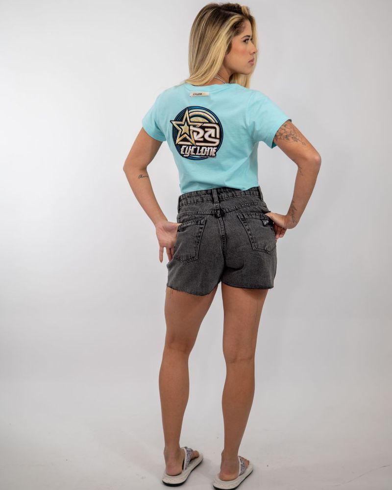 Baby Look Cyclone Cropped Starloop Metal em malha penteada com silk metalizado exclusivo.