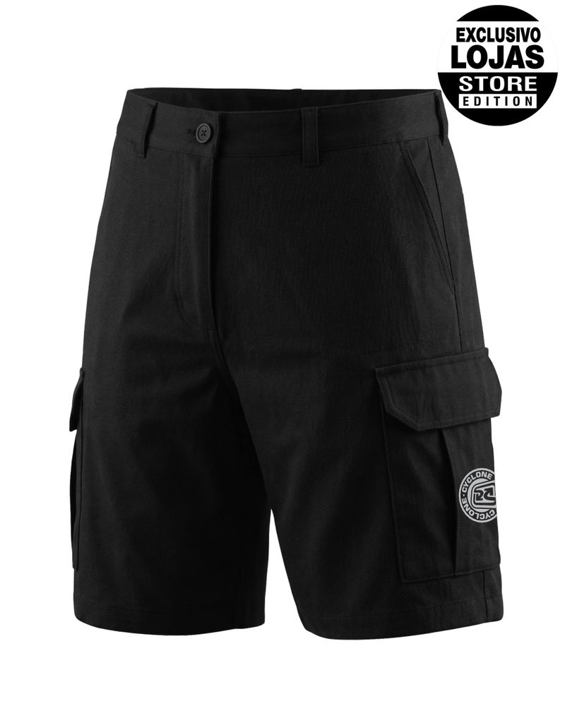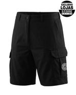 Modelagem estilo cargo, com bolsos frontais, bolsos laterais e embutido nas costas. Logo termo colante exclusivo no bolso lateral.