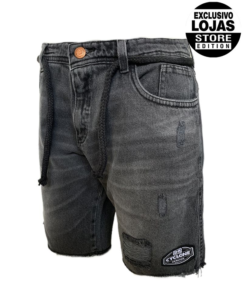 Bermuda Cyclone Jeans International Setas com lavagem especial, etiqueta exclusiva, dois bolsos frontais, sendo um com porta moeda e dois bolsos traseiros.