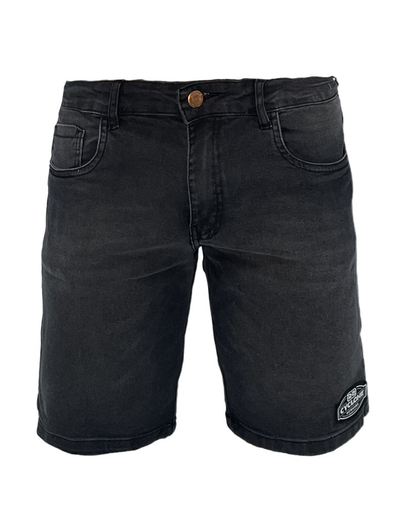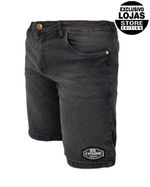 Bermuda Cyclone Jeans Stretch Storm com lavagem especial, etiqueta exclusiva, dois bolsos frontais, sendo um com porta moeda e dois bolsos traseiros.