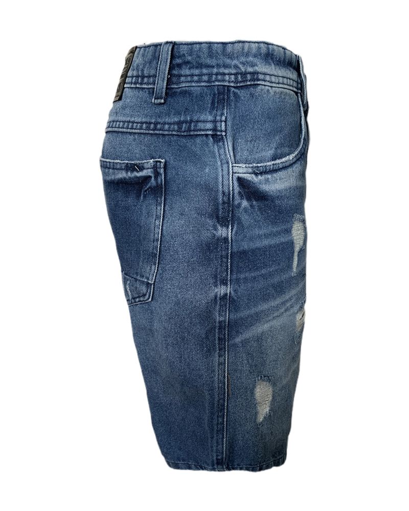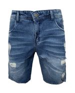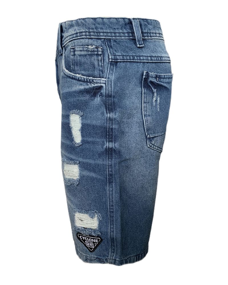 Bermuda Cyclone Jeans Used Skater com lavagem especial, etiqueta exclusiva, dois bolsos frontais, sendo um com porta moeda e dois bolsos traseiros.