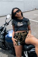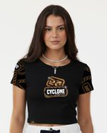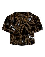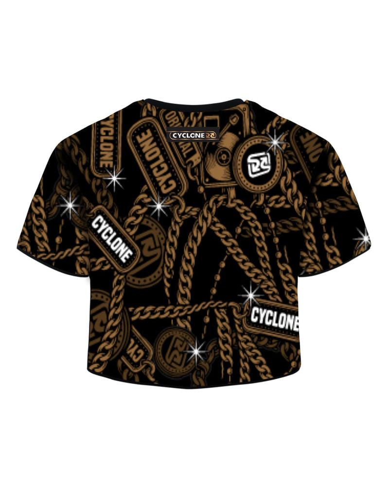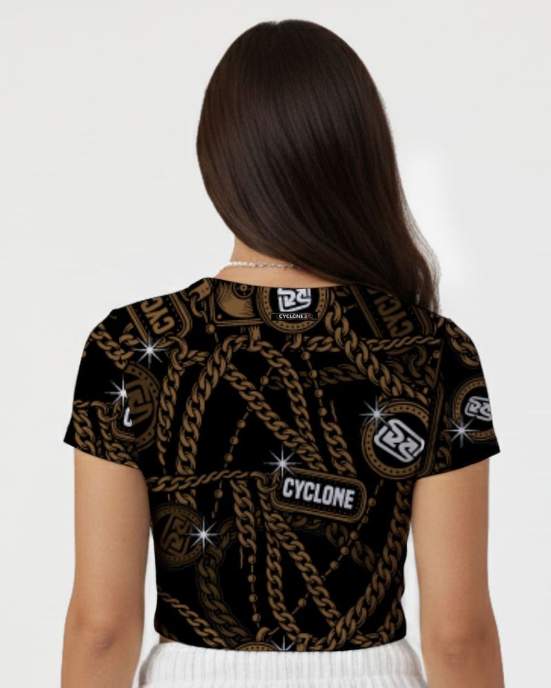 Blusa Cyclone Dif Cropped Full Gold Chains em malha penteada com silk fullprint exclusivo.
