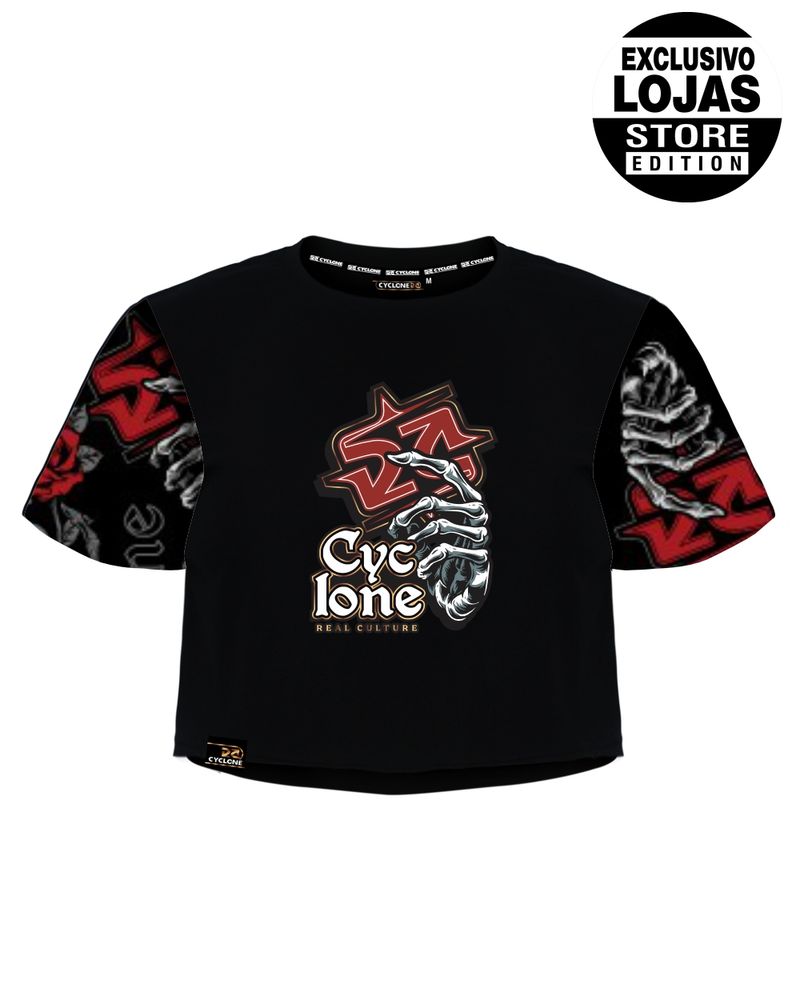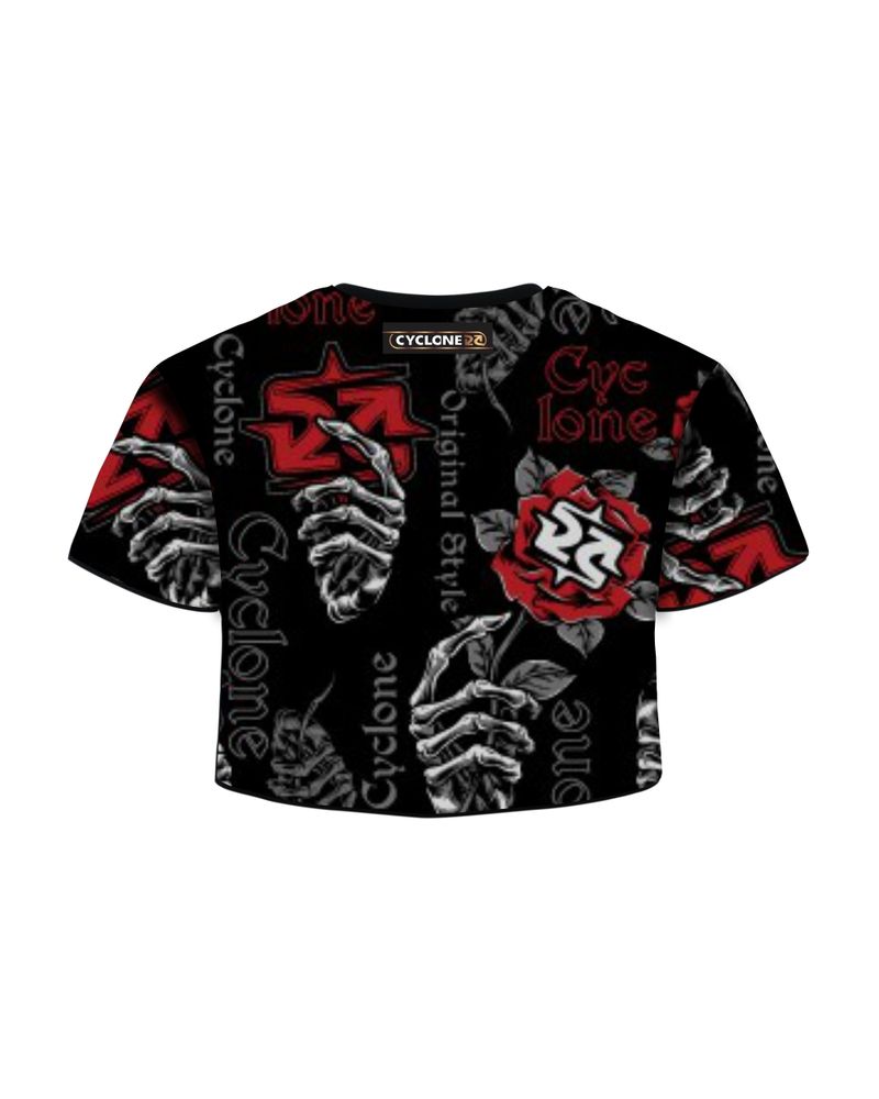 Blusa Cyclone Dif Cropped Full Skull Roses em malha penteada com silk fullprint exclusivo.