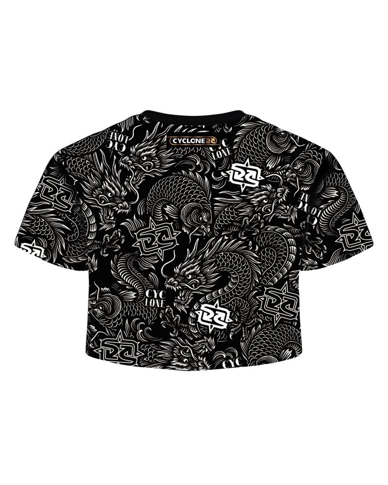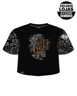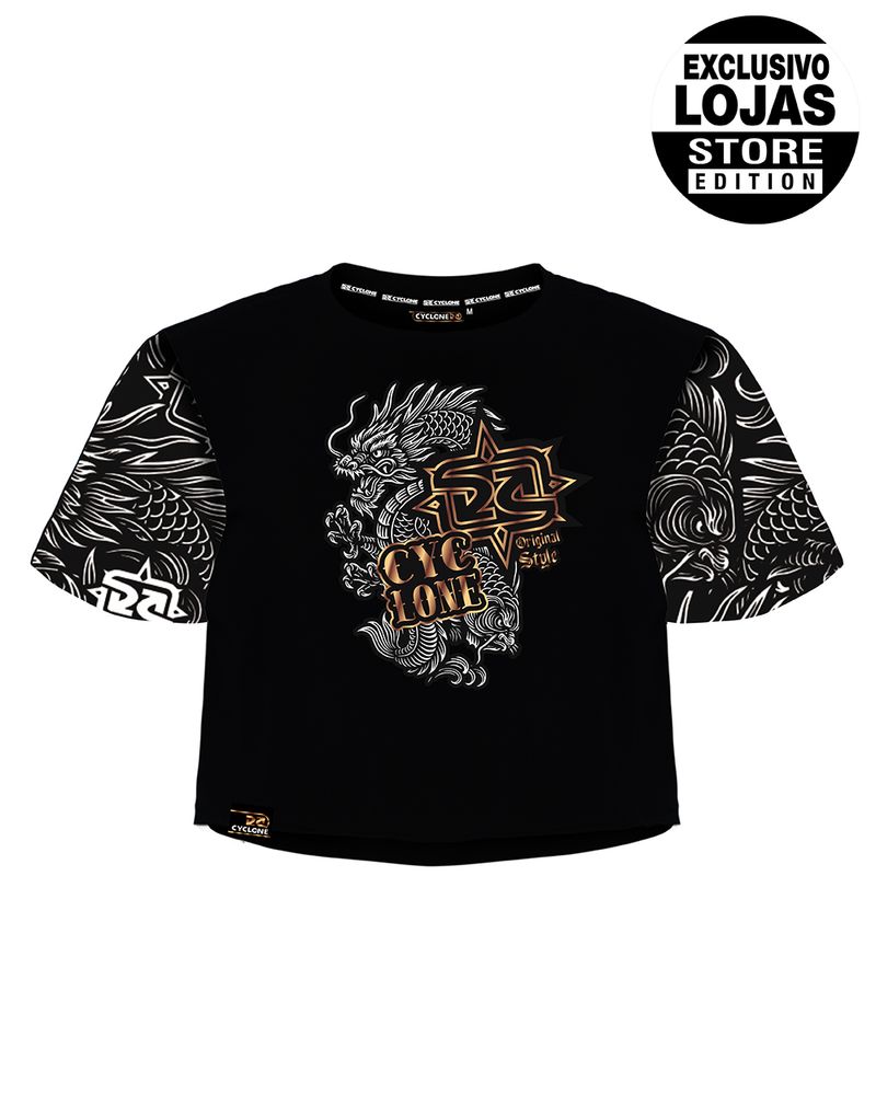 Blusa Cyclone Dif Cropped Full Tattoo Oriental em malha penteada com silk fullprint exclusivo.