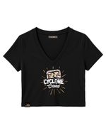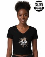 Blusa Cyclone Dif Cropped V Groove Metal em malha viscolycra com silk metalizado exclusivo e decote V. Combine com short e saia de veludo para um look cheio de atitude e originalidade.
