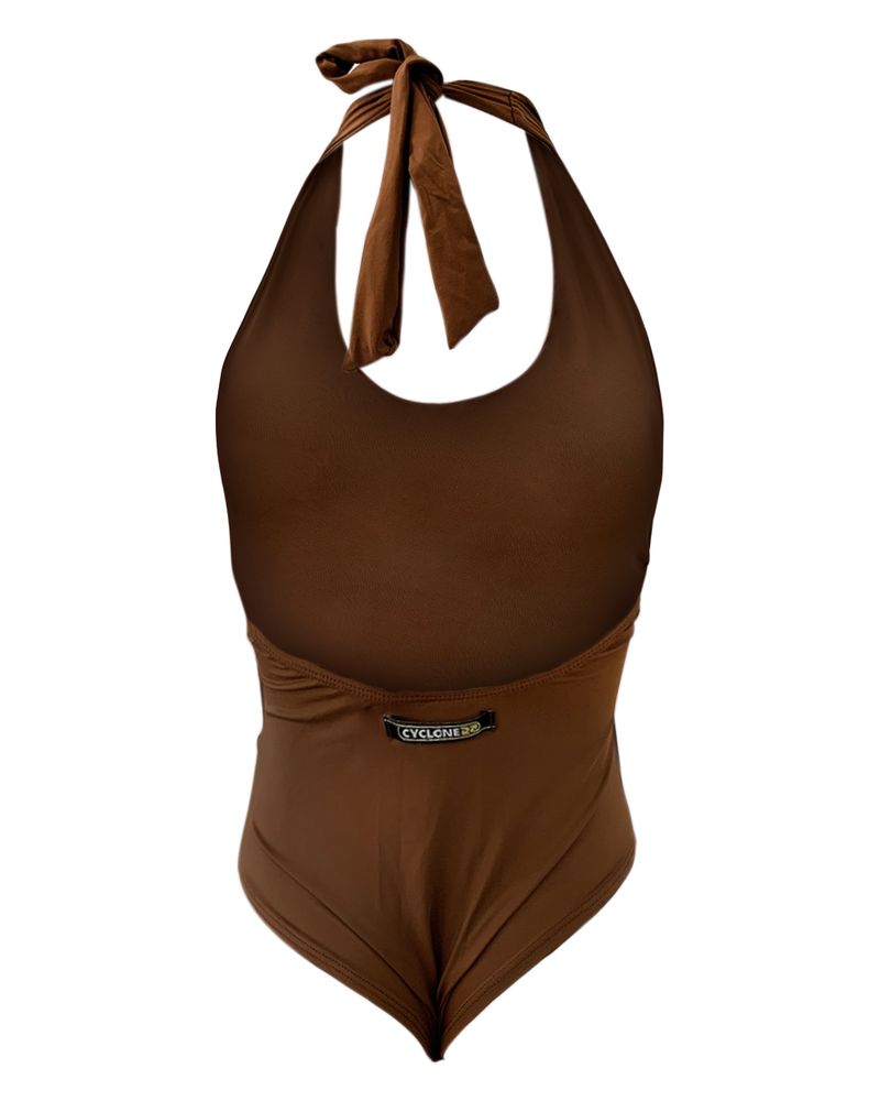 Body Cyclone Santorine em malha poliamida com silk metalizado exclusivo.