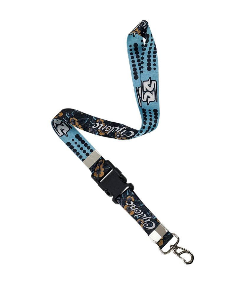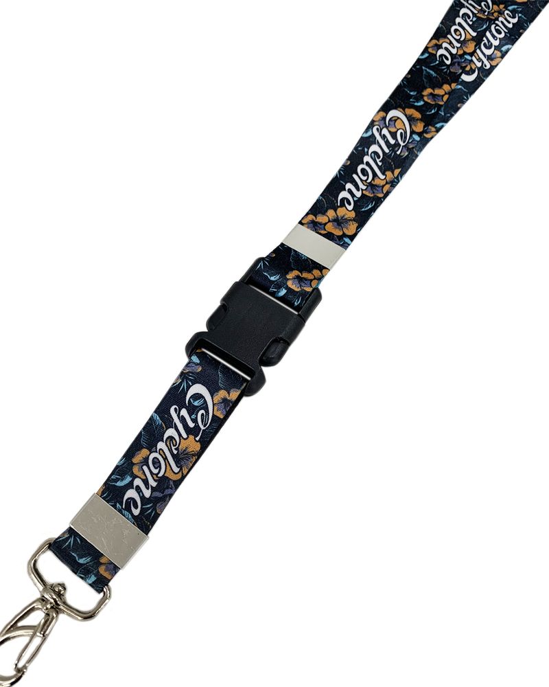 Chaveiro Cyclone Hawaiian Garden em fita sintética de 25 mm com estampa exclusiva sublimada. Engate destacável e mosquetão em metal. Composição: 100% algodão (Ref 07300201) (Coleção Verão26)