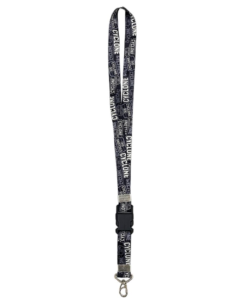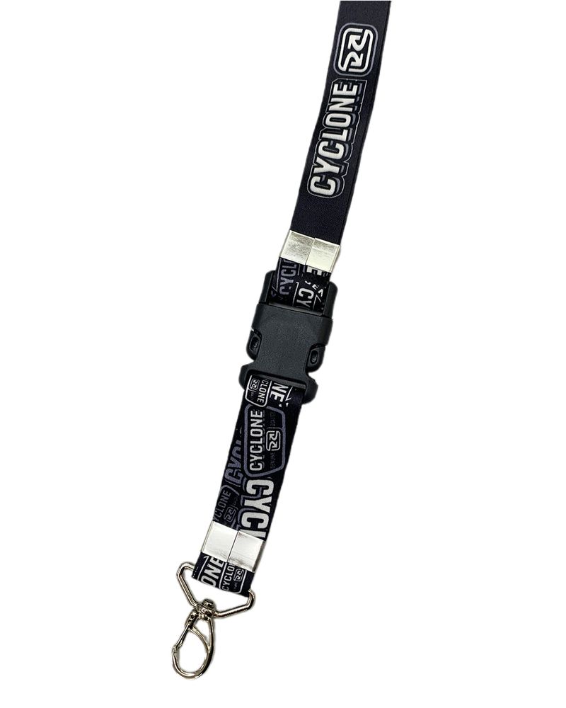 Chaveiro Cyclone Cordão Multi Label em fita sintética de 25 mm com estampa exclusiva sublimada. Engate destacável e mosquetão em metal.