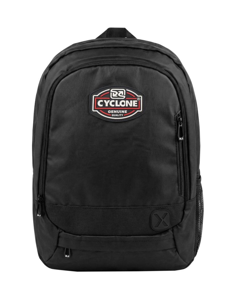 Mochila Cyclone Laptop X Genuine de alta resistência com dois compartimentos, alça de mão, bolso frontal e elástico nas laterais para garrafa.