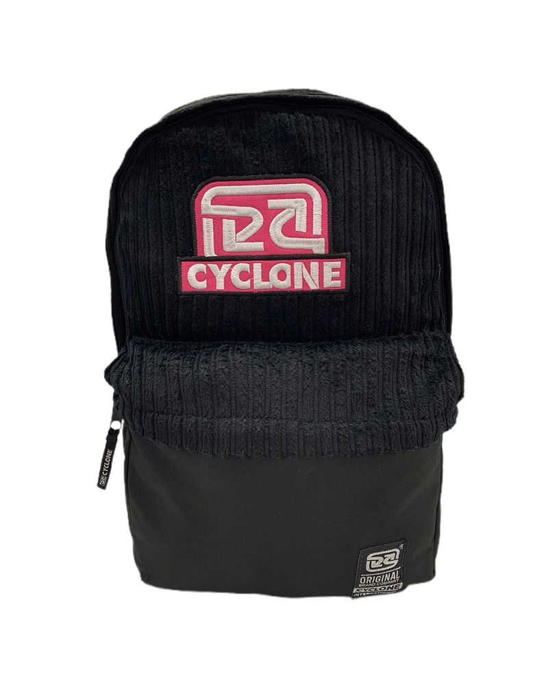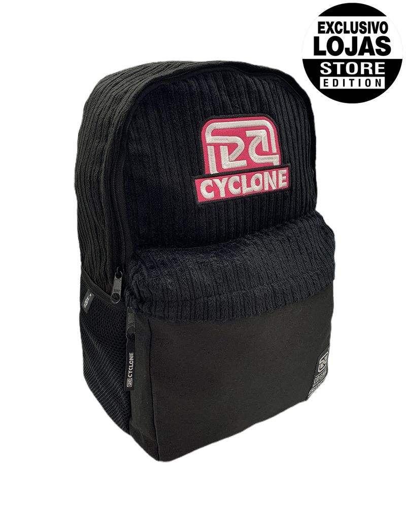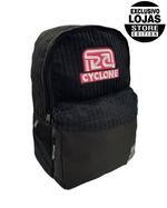 Mochila Cyclone em duratran com frente em veludo grosso de alta resistência com bordado exclusivo. Possui uma abertura principal e bolso frontal com zíper, alças ajustáveis e bolsos laterais de rede porta garrafa. Dimensões: altura 45cm / largura: 35cm / profundidade: 15cm. Capacidade: 24 litros (Ref 06400144) (Coleção Verão 25)