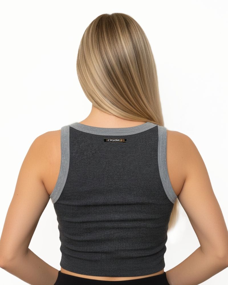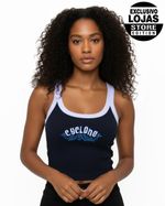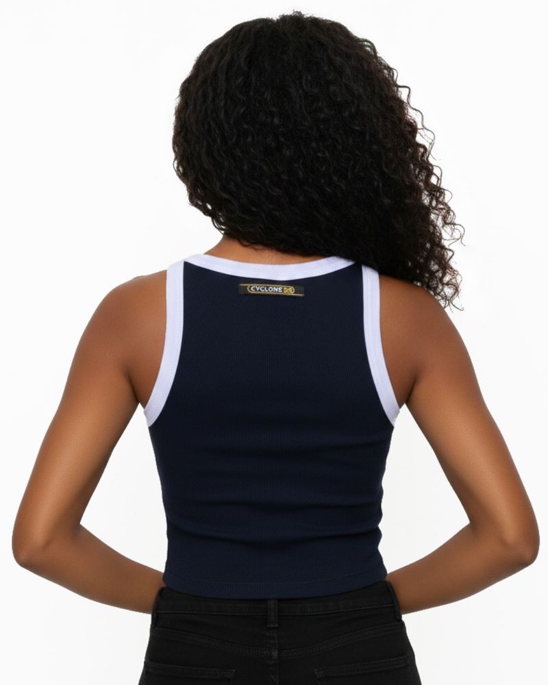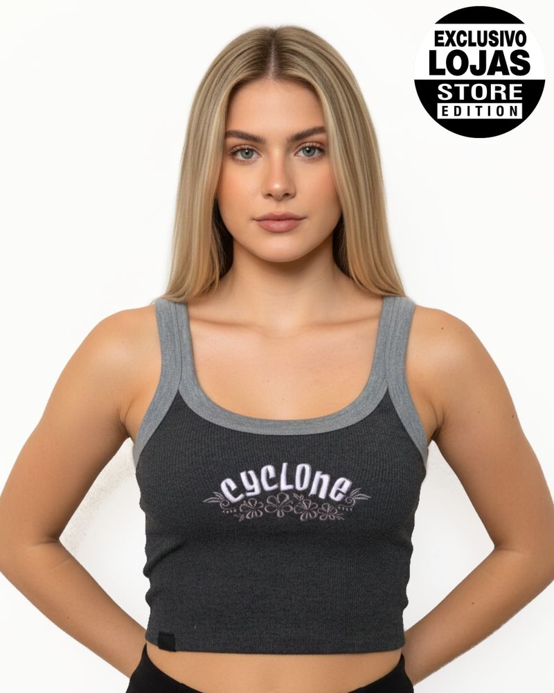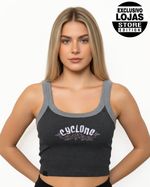 Regata Feminina Cyclone Basic Cropped em ribana com bordado personalizado exclusivo. Combine com short e saia de veludo para um look cheio de atitude e originalidade.