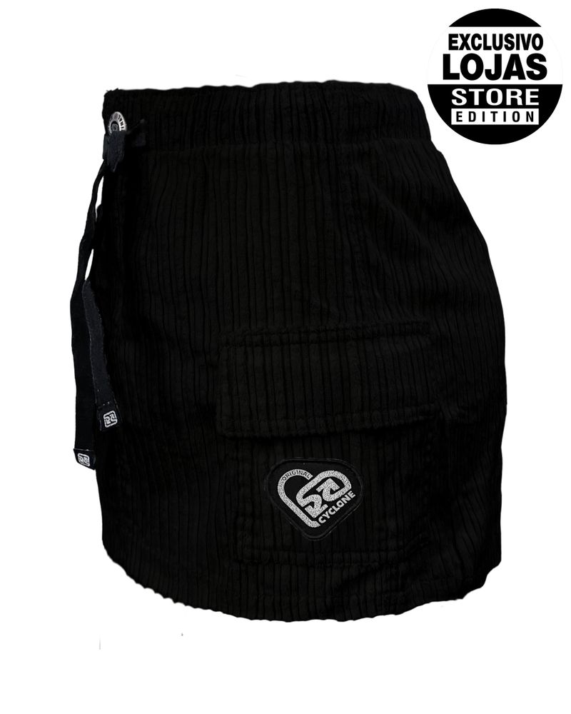 Saia feminina Cyclone em veludo grosso nobre de alta resistência e conforto, estilo cargo com bolsos laterais. Possui elástico na cintura e cadarço para amarração. Patch bordado em alto relevo e recorte à laser, com design exclusivo Cyclone.