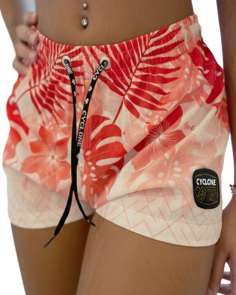 Short Feminino Cyclone Stretch Redsun em microfibra com elastano, estampa exclusiva e cadarço ajustável.