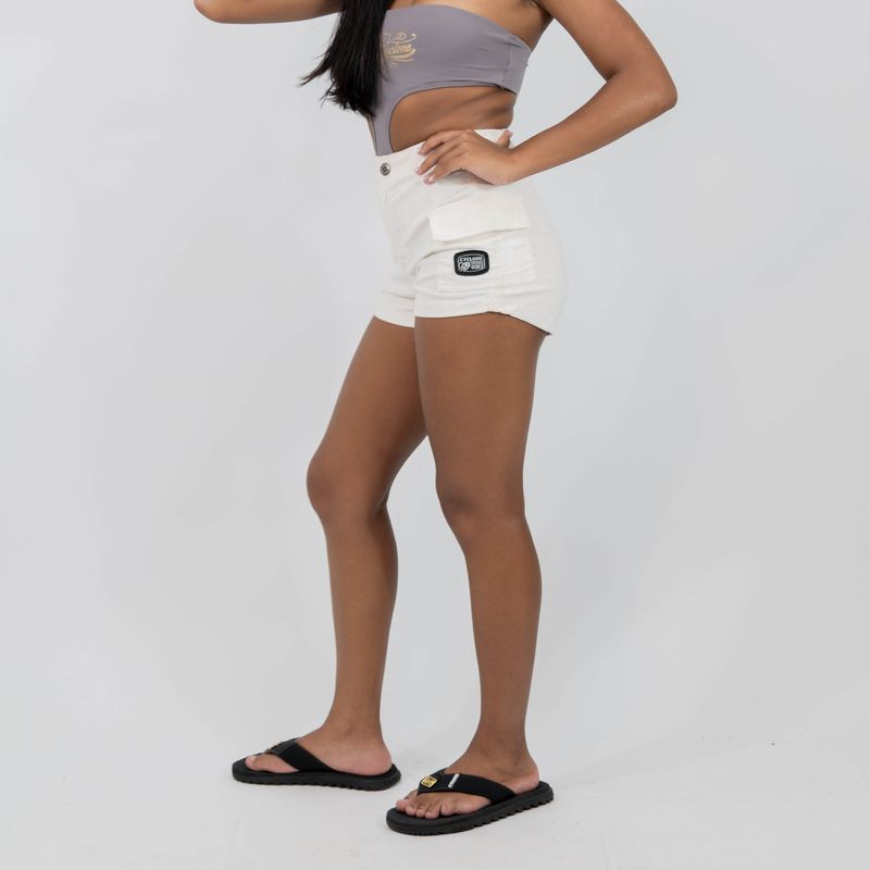 Short feminino Cyclone em veludo fino nobre de alta resistência e conforto, estilo cargo com bolsos laterais. Possui elástico na cintura. Patch bordado em alto relevo e recorte à laser, com design exclusivo Cyclone.