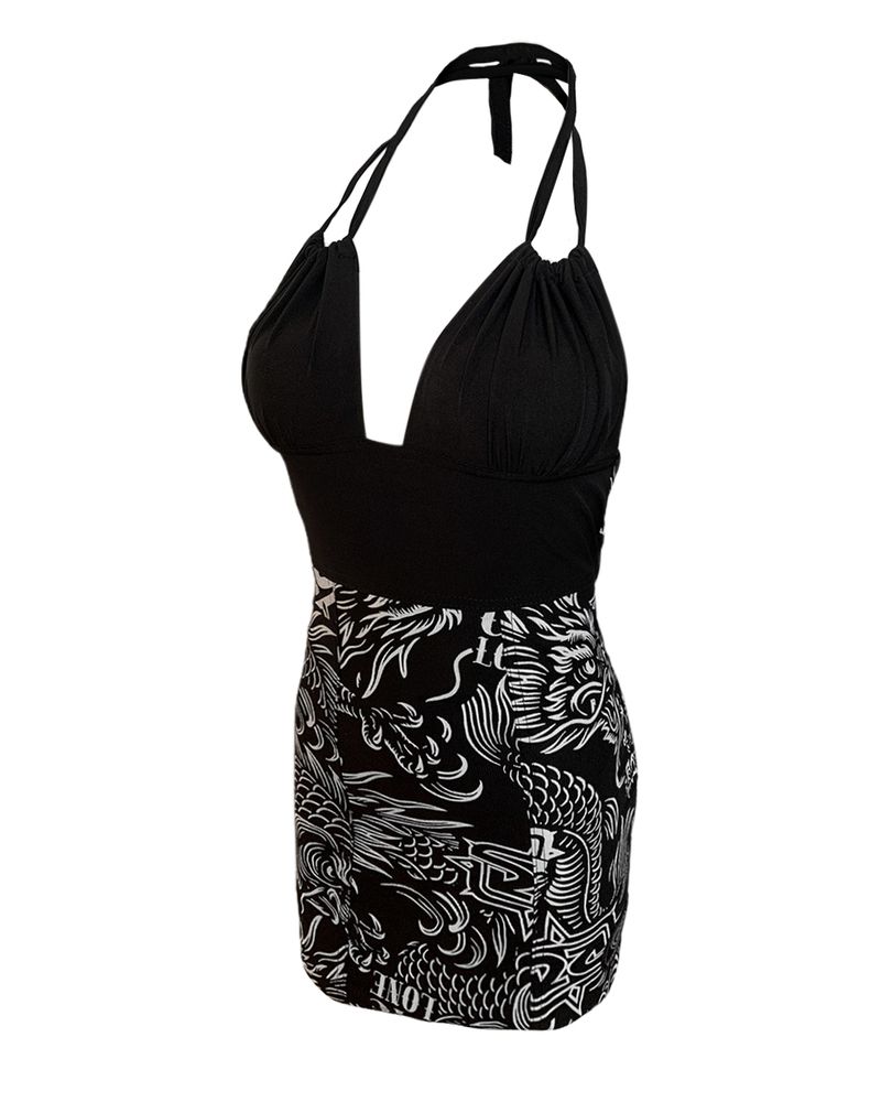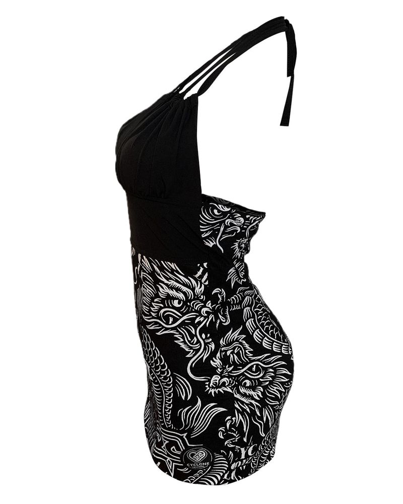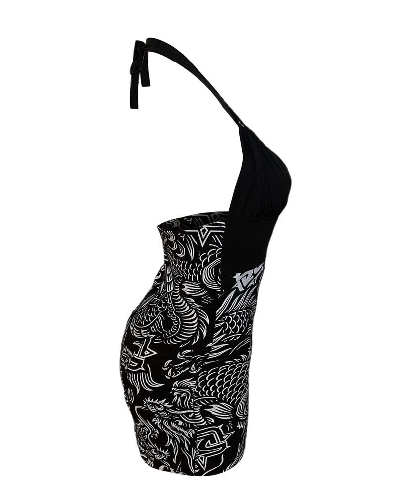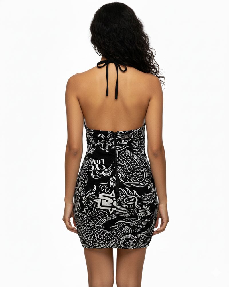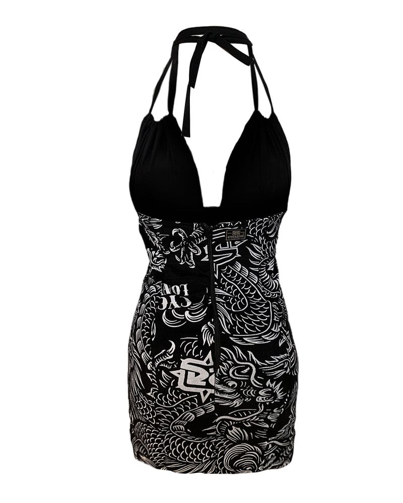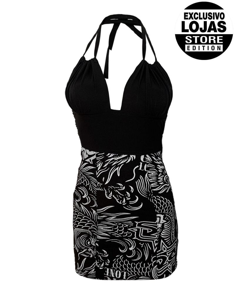 Vestido Cyclone Veludo Tattoo Oriental curto e justo em veludo leve de alta resistência e conforto com estampa exclusiva estilizada. Todas as estampas são desenvolvidas internamente pelo time de criação da Cyclone.