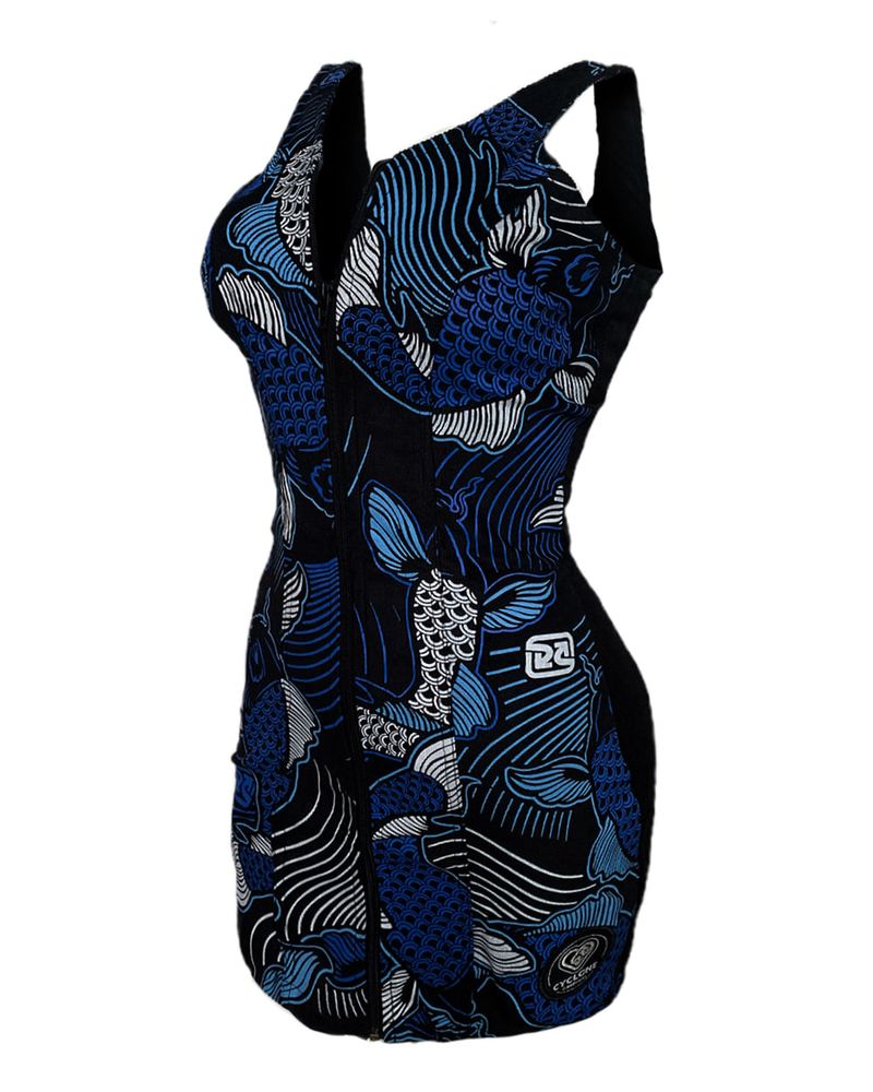 Vestido Cyclone Veludo Zip Oriental Symbol Light curto e justo em veludo leve de alta resistência e conforto com estampa exclusiva estilizada. Todas as estampas são desenvolvidas internamente pelo time de criação da Cyclone.
